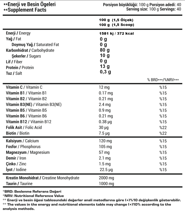 1 porsiyon (100g / 1,5 ölçek) ürünü damak tadınıza göre 350-500 ml su veya süt ile karıştırılarak öğün aralarında ve antrenmandan 60 dakika önce veya hemen sonra olmak üzere günde 3 defa kullanılır. Laktoz intoleransı olan kişiler sütten dolayı rahatsızlık yaşayabilirler. Bu tip rahatsızlık yaşayanların su ile tüketmesi önerilmektedir.
