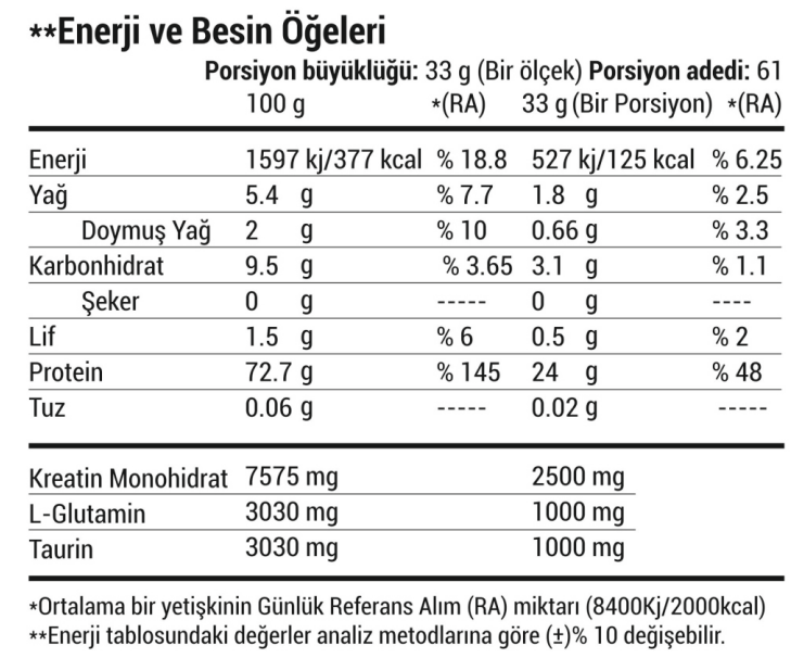 • Porsiyon Başı 2.5 gr Kreatin Takviyeli